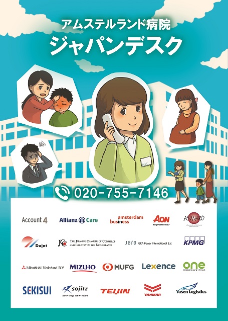The Japan Desk Amstelland Hospital is an independent, non-profit foundation located in the Amstelland Hospital in Amstelveen which offers free of charge information and language support for Japanese nationals who visit the Amstelland Hospital. Please feel free to contact our Japanese staff for guidance about visits to the Amstelland Hospital or for information about the Dutch medical system in general.